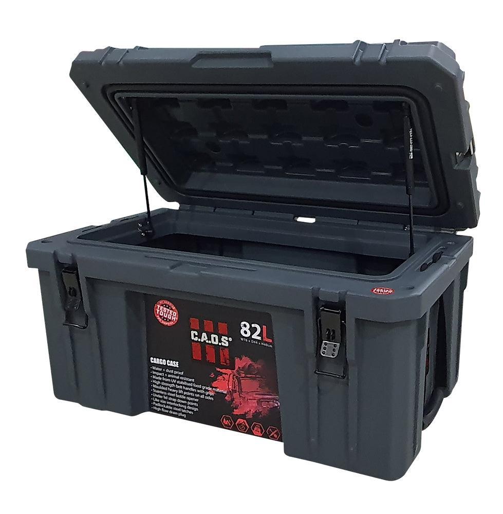 The CAOS 82L Adventure Series Case is a heavy-duty storage solution, perfect for camping gear, tools, and general storage. Built for rugged outdoor conditions, it features a tough LLDPE shell, waterproof and dustproof seal, and secure locking system, ensuring your gear stays protected and organised.