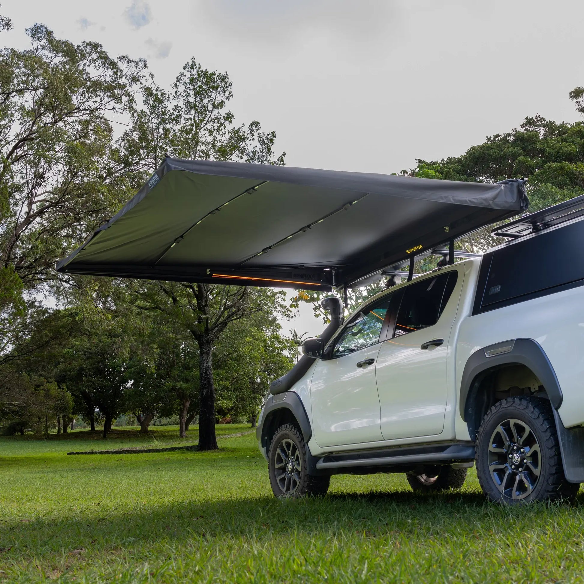 Conquer the outdoors with compact, square-shaped shade, durability, and style. The 320gsm Hexatough UV50+ waterproof black canvas ensures superior protection and cooler evenings, while reinforced arm guards keep your setup stable in harsh conditions. With multi-functional RGB lightsβtwo pre-installed arms offering pulsing, music-synced, or a quiet single-colour glowβyou set the vibe. Loud when you want it, quiet when you need it, with a bug-reducing red mode for peaceful nights. Order now to experience premium camping performance!